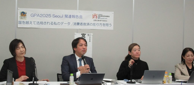 世界プライバシー会議(Global Privacy Assembly 以下、GPA)は、1979 年から毎年開催されているデータ保護とプライバシーデータカバナンス当局のための国際会議です。日本からは個人情報保護委員会が正式メンバーとして参加しています。 第47回GPAは、「AI時代に必要な秩序を求めて」をテーマに2025年9月16〜19日に、韓国ソウルで開催されました(GPA2025 Seoul)。 9月15日にはアジア・太平洋地域の消費者団体と市民団体によるプレ企画「アジア太平洋地域のデジタル消費者対話」が開催されました。この企画の検討段階から当日まで、全国消団連国際活動専門委員が参加しました。また、9月17日のGPA本体企画では日本の消費者団体の提起を受けて、「越境データ移転における消費者のデータ救済強化と、データ・ガバナンス制度の相互運用性:消費者の視点」が開催されました。 GPAについて日本国内で報道されることが少ないことから、全国消団連国際活動専門委員会では、その内容について広く日本の消費者に紹介すること、データの利活用と消費者の権利擁護と救済について考えあうきっかけづくりとすることを目的に、今回の報告会を企画しました。これまでのGPAにほぼ毎回参加されて多くの講演を行われ、今回のプレ企画とパラレル企画で中心的な役割を担われた、中央大学総合政策部の宮下紘教授にご講演いただきました。 【日 時】2026年1月9日(金)15:00〜17:00 【企画運営】全国消団連国際活動専門委員会 【テーマ】データ利活用と消費者の権利擁護・救済 【タイトル】「国を越えて活用される私のデータ 〜消費者救済の在り方を問う〜」 【参 加】38人 【概 要】