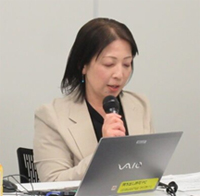 【事務局による概要報告】 加藤絵美国際活動専門委員会委員長の開催挨拶の後、報告と講演、休憩をはさんで、講師・登壇者との質疑応答を行いました。最後に河村真紀子国際活動専門委員の挨拶で報告会を終えました。 報告① 会議の全体概要とパラレル企画について