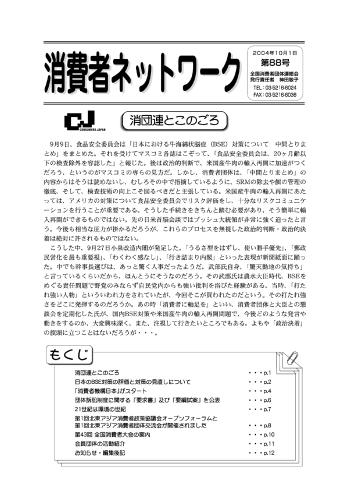 概要:A-4版 24頁 購読料:3,000円 申し込み先:全国消団連 電話:03-5216-6024 Fax:03-5216-6036 メール:webmaster@shodanren.gr.jp